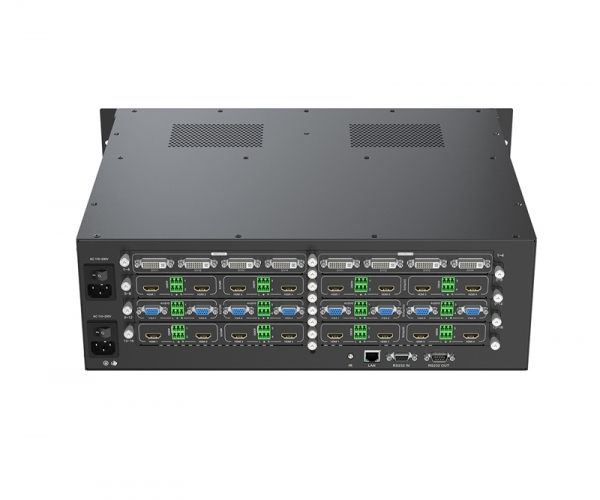·采用FPGA纯硬件架构,内部无操作系统,无系统崩溃、病毒侵扰、兼容性等问题。模块化设计(包括输入卡、输出卡、切换卡、控制卡、风扇)方便以后升级维护、支持热拔插